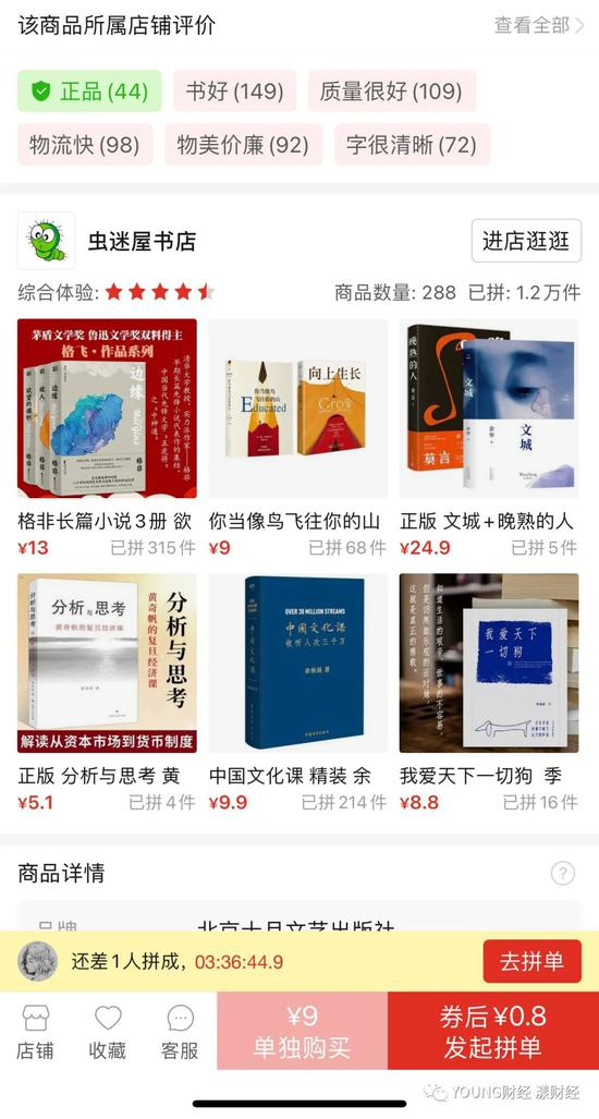 当YOUNG财经按此步骤操作时发现,拼多多给出的举报内容并不包含盗版书。我们随即向12390全扫办询问“盗版书是否为国家命令禁止销售”,对方回复“盗版书当然是国家命令禁止销售的商品”,那么是不是在拼多多的逻辑里,盗版书并不算违反国家禁令而销售的商品?