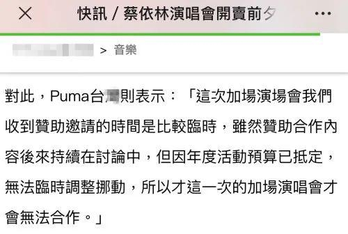 蔡依林演唱会撤下PUMA赞助,转头就被品牌方"打脸"?