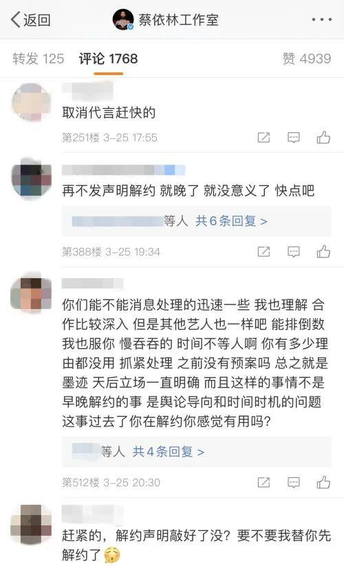这其中唯独蔡依林迟迟没有发声,据台媒报道,蔡依林自2019年就成为了PUMA台湾地区的代言人。这也让她被网友嘲讽成了PUMA“唯一中国代言人”,不少粉丝心急火燎,在蔡依林和工作室的微博下扎堆喊话其尽快与辱华品牌解约。