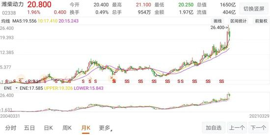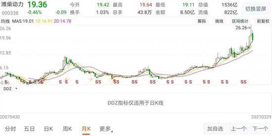 更有趣的,港股上潍柴动力(HK:02338)在牛市开市首日达到26.4港元的52周高点后有所下调,但回撤幅度小于同样在牛市第一天摸高至26.26元,后掉头直下的A股兄弟。“改名绿柴动力算了,刚好契合碳中和”。有人在网吧上戏言,但不满情绪一目了然。