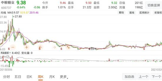 换了东家后,合金投资命运多舛,在2015年3月25日“疯牛行情”中见过28.38元/股,但截至2021年3月25日,则只剩下6.57元/股,市值仅为25.3亿元。倒是投奔央企背景中粮系的屯河,在更名为中粮糖业后,仍能录得201.9亿元市值。