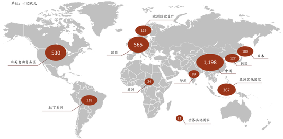 图表: 中国是全球最大化工品市场(2018年,十亿欧元)