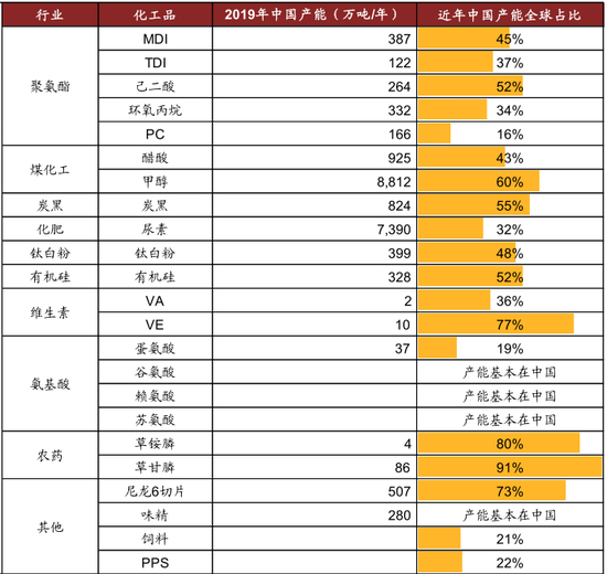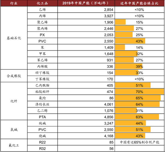 图表: 全球主要化工品中国产能占比最高