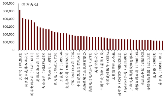 图表: 2019年全球前五百强企业营收