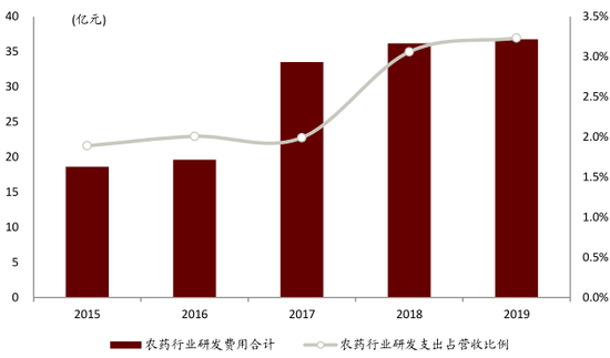 图表:中国农药行业研发费用与研发支出占比