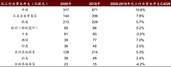 图表: 2008-2018年中国化工企业资本开支规模最大、增速最快