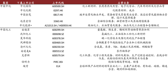 聚焦新技术与新产品,协同能源、化工等多领域,提升全球产业链影响力。将企业做大做强及提升核心竞争力是国企改革的重要目标,两化合并后业务涵盖生命科学、材料科学、基础化工、环境科学、橡胶轮胎、机械装备、城市运营、产业金融等众多领域。据中化集团资讯,新公司将在建筑、交通、新一代信息产业等应用领域,突破关键材料瓶颈,提供化工材料综合解决方案;在农业领域,提供高水平的农资与农业综合服务,推动我国农业转型升级;在化工环保业务领域,大力推进节能减排,为我国碳达峰、碳中和目标实现贡献化工行业力量。