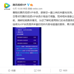 腾讯视频VIP涨价 4月10日零点起实行新的VIP价格