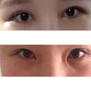 孙萌(化名)的眼部整容前后对比图,上图是整容前,下图是整容后。受访者 供图