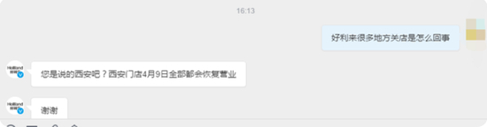 对于网上称西安好利来大面积闭店的消息,好利来官方微博也回应中新网的询问,表示西安门店4月9日全部都会恢复营业。