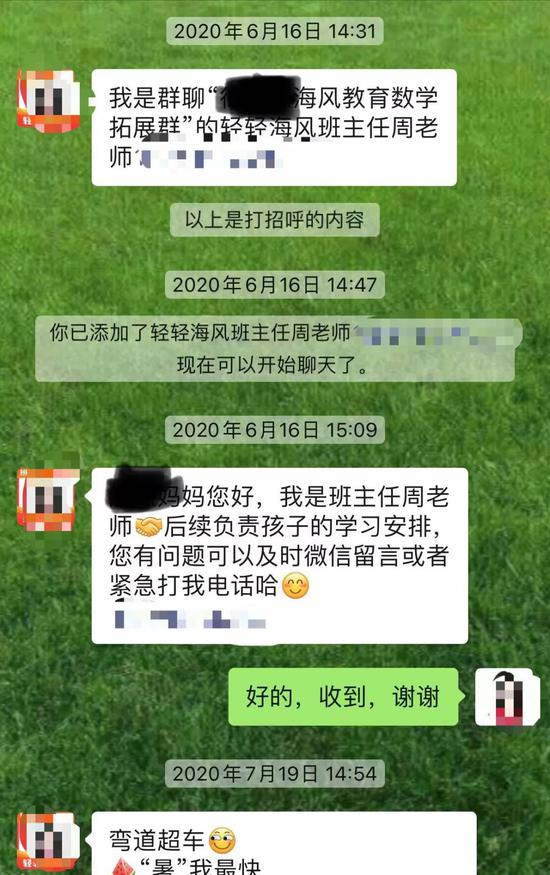 直到2020年6月中旬,她开始嗅到些不对劲。首先是辅导课程的班主任发生了变化,且班主任的名称为“轻轻海风班主任X老师”。虽然心里有些打鼓,但直到2021年2月初,她才明白过来是怎么回事。