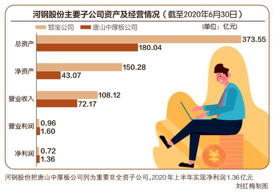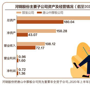 从股权关系来看,河钢股份是唐山中厚板公司的控股股东,持有后者51%股权。河钢股份2020年半年报披露,唐山中厚板公司被河钢股份列为重要非全资子公司,2020年上半年实现营业收入72.17亿元,净利润1.36亿元。
