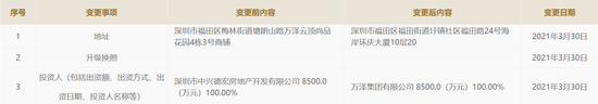 新京报贝壳财经记者获悉,原属万泽系的一家地产公司深圳市玉龙宫实业发展有限公司近期发生工商变更,再次成为万泽集团全资子公司。此前在2015年,万泽系上市公司万泽股份曾因考虑转型而将玉龙宫公司以3.2亿元出售。