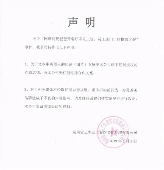 对于网上铺天盖地的指责,何畏彼时表示网上展示的欠薪店铺不属于其公司旗下授权的连锁店铺,甚至公开发布了声明证明清白。