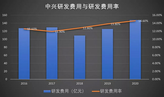 前文已经说过,只有坚持高强度的研发投入,才能确保产品技术的领先性。中兴在自主研发创新方面已经取得了瞩目的成就,目前每年的研发投入也超过一百亿。