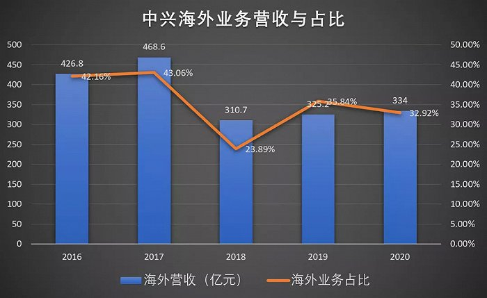 再次,巨额罚款和制裁让中兴2018年的净利润从2017年的45.68亿断崖式跌至-69.84亿,海外业务营收从468.6亿下滑到310.7亿,至今依然没能回暖,追求的国际化道路更难走通。