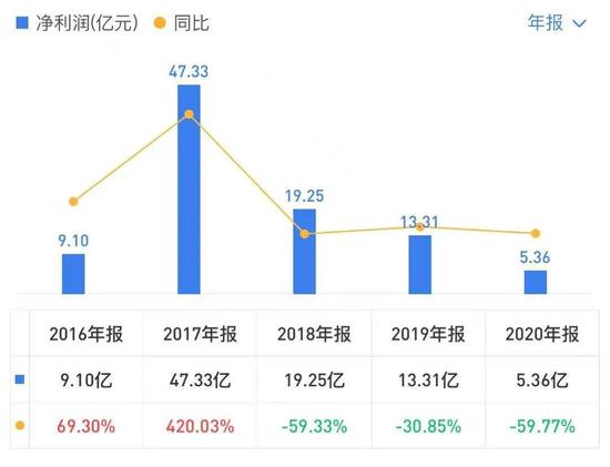 衡量企业长期赚钱能力的指标是ROE,而这一指标在2020年仅为1.47%,也同比大降超6成。