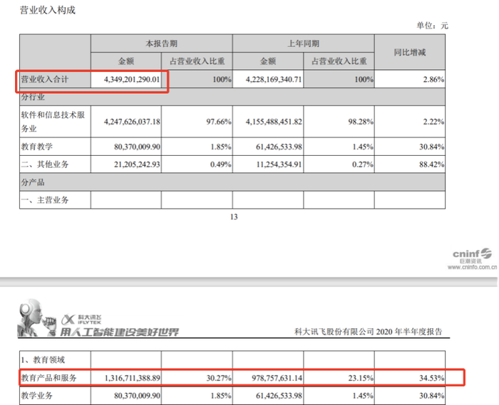 此外,陆昀还提供了讯飞在一审中提供的讯飞教育产品和服务收入占营业收入总额及毛利统计表,加上2020年半年度报告的数据,指出自己的离职并未对科大讯飞的业务产生影响。相反,疫情期间讯飞业务逆势增长,巨潮网2020年半年度报告显示,陆昀离职后,讯飞公司智慧教育业务毛利8.06亿元,2020年的教育产品和服务的收入、毛利率均持续上升,并未显示出任何损失。
