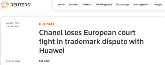 历经数年,法国奢侈品品牌香奈儿(Chanel)在与华为的“商标大战”中落败。