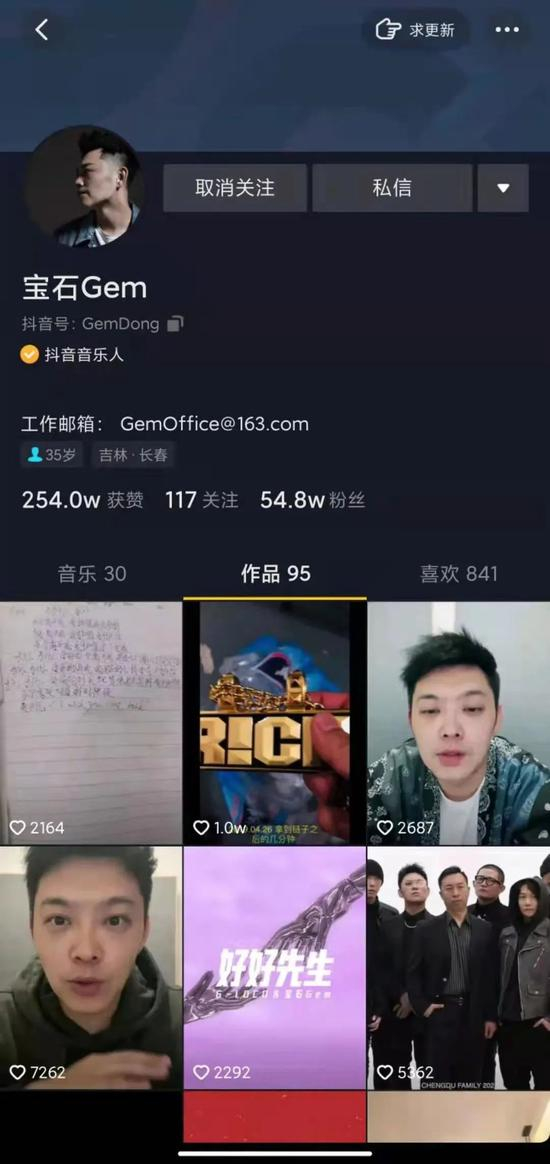 像是因《野狼disco》迅速出圈的宝石GEM,迄今为止在抖音上的粉丝也仅有54.8万。如果不是走上了春晚,仅凭抖音平台,很难想象如何能完成商业化和知名度上的跃升。