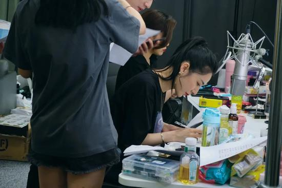 3点,化妆同时试看穿搭效果、拍摄、改造型同时接受采访……