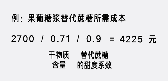 据 2017 年的一份行业报告,含糖量 71% 的果葡糖浆当时市场价为 2700 元/吨,而蔗糖为 4500 元/吨。在相同甜度的情况下,每用它替代一吨蔗糖,生产成本可降低 275 元,所以备受饮料厂商的青睐。