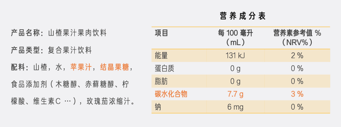 某沙棘果汁饮料配料及营养成分表