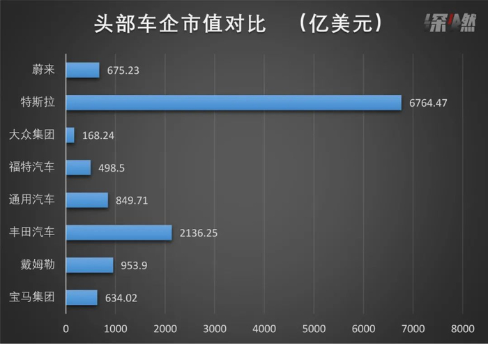 当然,更为要命的是,新能源车企的股价飞涨,甚至开始碾压传统车企。一年只卖出去将近50万辆的特斯拉,在峰值的时候股价被拉到了全球第一大汽车集团丰田的三倍。即便是最近股价有所下滑,但特斯拉的市值依旧吊打BBA。大众的市值则被销量不及自己零头的蔚来反超。