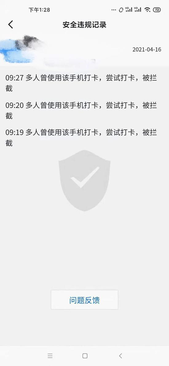 代打卡到第三次时,问题出现了,在老板端的App中出现了安全违规记录。
