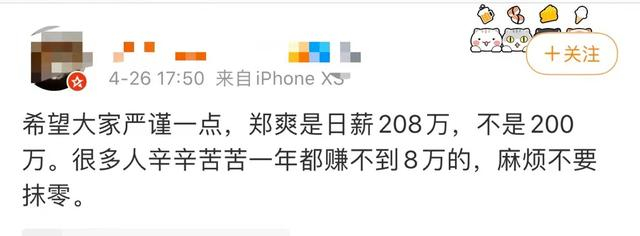 近日,微博为“张恒KN“的账号爆料称,女艺人郑爽出演某片的片酬高达208万/天。而且,为了逃避“限薪令”,郑爽方将片酬1.6亿拆分为4800万片酬和对疑似郑爽母亲持股的公司增资1.12亿。