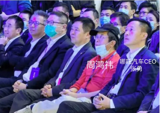 这一幕,也被媒体拍了下来。在一众蓝色黑色西服的衬托下,“红衣教主”周鸿祎坐在哪吒汽车CEO张勇的旁边。