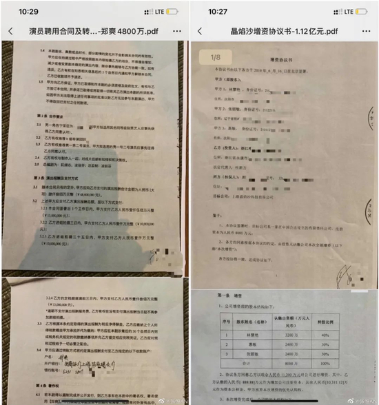 见得了光的“阳合同”为4800万元的演员聘用合同,打入郑爽妈妈控制的新沂萃珊雯,而见不了光的阴合同签订于2019年6月16日,以增资协议书的形式,对上海晶焰沙科技有限公司进行1.12亿增资。