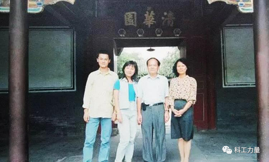 王兴和家人在清华门前合影
