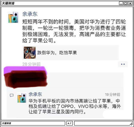 前几天,华为余承东的朋友圈又火了。