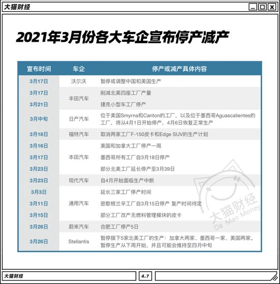 从去年年底开始,大众就有两款车型因为芯片缺货而停产。紧接着,沃尔沃、通用、福特、丰田等一大堆跨国车企也都陆陆续续停掉了一部分产线。