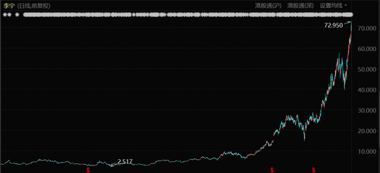受益于销量的增长,李宁股价从3月以来也一路上行。5月7日上探至72.95元/股的高点,截至5月7日收盘,股价报68.5元/股,总市值超1700亿港元。在3月9日至5月7日期间,李宁股价累计上涨达67.07%。今日,李宁股价有所下调,截至发稿跌4.38%,报65.5港元/股。