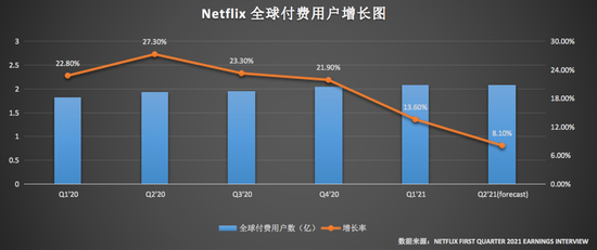 经历了2020年高涨的奈飞,在2021年一季度也难逃会员增长乏力的趋势。