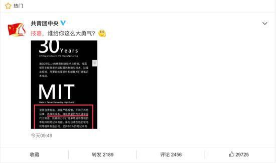 对此,共青团中央发布博文:技嘉,谁给你这么大勇气?