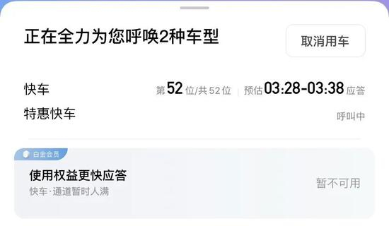 “当前第五十二位,预计四十八分钟后应答。快速应答通道暂时人满,暂不可用。”