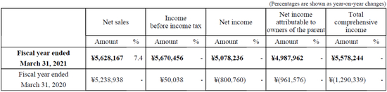 5月12日,软银集团2020财报出炉:截至2021年3月31日,软银在该财年净销售额为5.6282万亿日元(约合人民币3326亿元),较上年同期的5.2389万亿日元增长7.4%;归属于软银母公司股东的净利润为4.9879万亿日元(约合人民币2948亿元)。