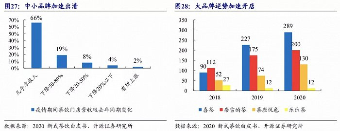 2020年,受到疫情的影响,诸多实体店遇到困难,空出众多店面,大品牌有更多拿点位的机会。喜茶在全国多地新开了289家店,而茶颜悦色新增的130家,除了常德和武汉的寥寥几家,其余新店都在长沙。