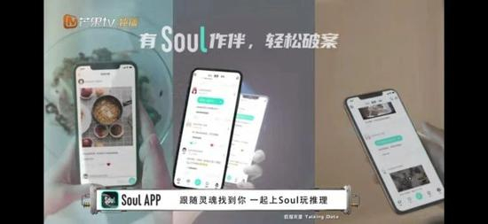 除依托社交及短视频平台打广告之外,Soul还作为综艺节目赞助商,得益于节目热度收割了一批流量红利。作为《明星大侦探》第六季超级合作伙伴,Soul在片头、片尾及节目中间皆有所植入。而热门综艺《奇葩说》则以“伴侣有个异性soulmate,我该介意吗?”等辩题,将Soul的广告植入得润物细无声。