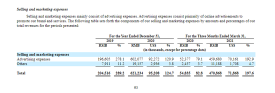 令人称奇的是,收入如此惊人的急速增长,依旧抵不过费用带来的亏损,由公司招股文件可见,近两三年,Soul全年的广告费用一项均高于其全年收入。就此,Soul在招股书中称“广告费用主要包括用于宣传我们的品牌和服务的在线广告。”