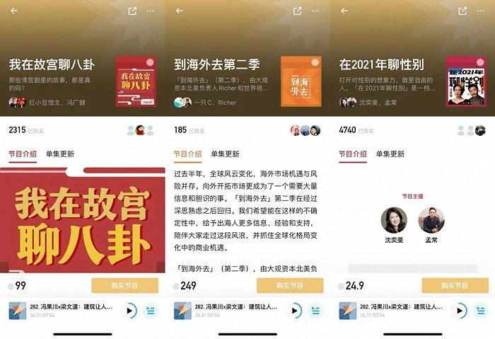 《北京话事人》就这样开创了中文播客的付费先例。直至今天,付费内容以及来自平台独家买断的费用,仍是他们最核心的收入来源。