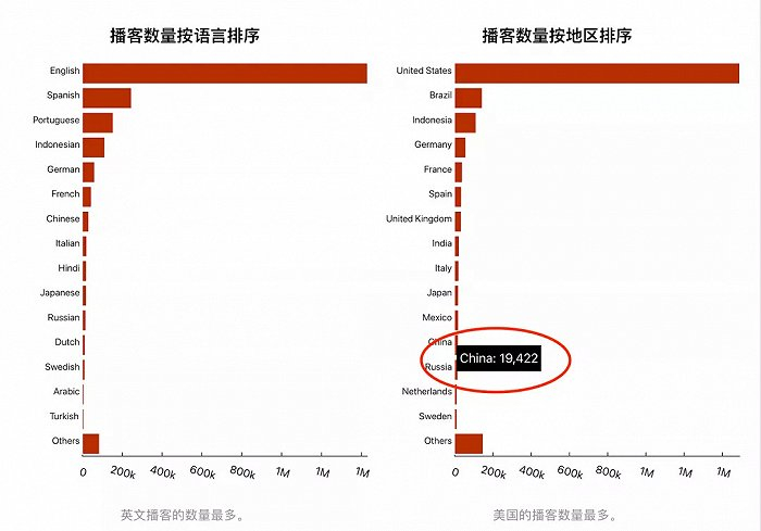 数据能佐证中文播客创作者爆发的增长。Listen Notes截至5月12日的数据显示,全世界有至少有 2306624 档播客节目。其中,有19422档为中国地区的中文播客,相较去年同期翻了将近一倍。也就是说,前一万档中文播客节目的积累花了15年,而后一万档的出现仅仅花了一年。