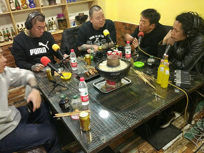 很长一段时间,每周三下午,他们都在一家叫“开心100”的烤串店录制。老板提供免费场地,一开始有粉丝来围观,他们录制时,粉丝就在旁边吃烤串。店里围观的人越来越多,不仅没有收入,“有时候围观录制播客粉丝太多,最后还会演变成了我们倒贴钱,给观众送吃的。”