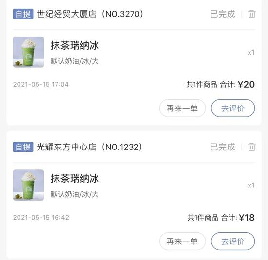 以位于北京市海淀区的光耀东方中心店和世纪经贸大厦店为例,同一款产品的抹茶纳瑞冰的售价分别为18元(光耀东方店)和20元(世纪经贸大厦店)。