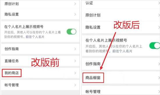 在视频号的设置中,原先的“我的商店”更名为“商品橱窗”。