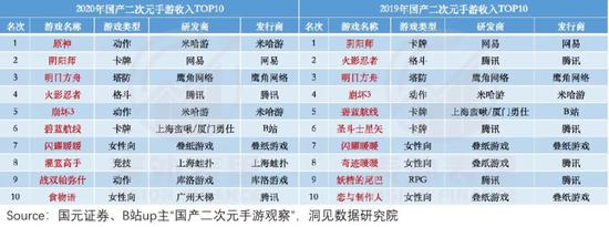 此外,《圣斗士星矢》、《妖精的尾巴》、《火影忍者》等动漫改编游戏,也在2020年或排名下降,或被直接挤出国产二次元手游TOP10。