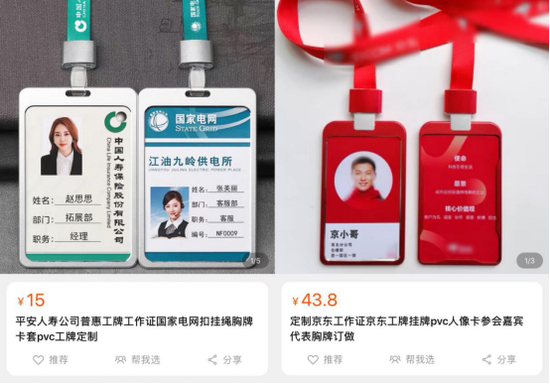 而隔壁某银行、某保险、某电网的工牌只需要14、15块钱。